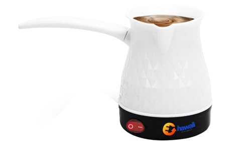 Hawaii - ماكينة تحضير القهوة التركية سعة 0.5 لتر بحماية مزدوجة من الحرارة من هاواي بقدرة 350 وات، بلون أبيض