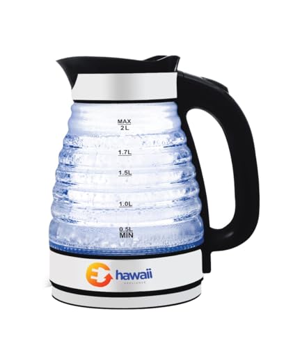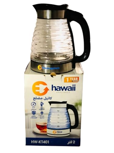 Hawaii - غلاية كهربائية بقوة 1500 وات بسخان من الفولاذ مقاوم للصدأ من هاواي، مصممة بهيكل من البايركس ومؤشر ليد، سعة 2 لتر