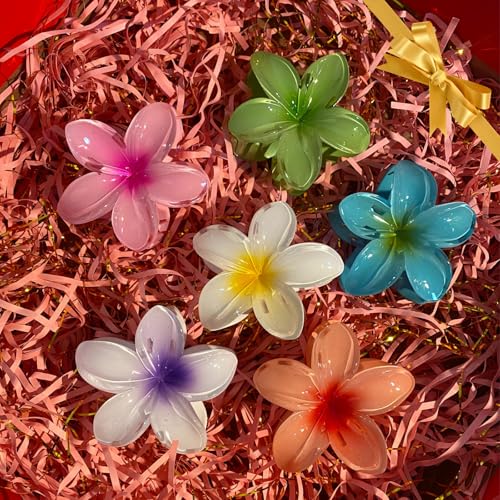 DOGODE - مشابك شعر على شكل زهرة هاواي - عبوة من 6 مشابك مخلبية ملونة للنساء والفتيات، اكسسوارات شعر جمالية كبيرة للشعر الكثيف او الرقيق، هدية عطلة الصيف على الشاطئ