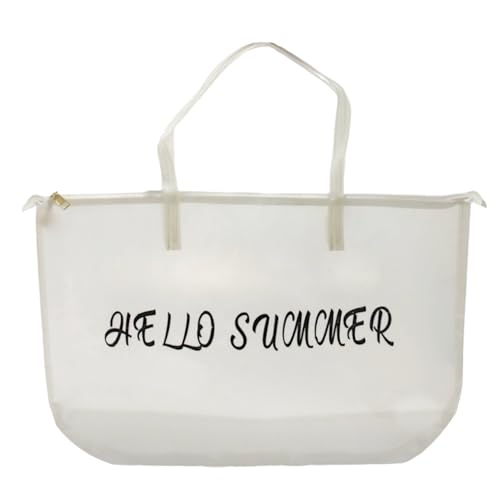 Hawsa - شنطة كتف مطبوعة بعبارة Hello Summer للنساء من هوسا - لون أبيض - المقاس: الطول: 35 × العرض: 53