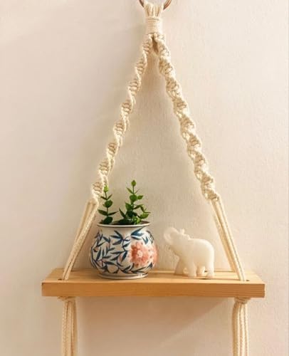 HAYAH LABORATORIES - رف مكرمية بتصميم حرف A من هاياه لابوراتوريز، رف مكرمية خشبي بمقبض للتعليق، 50 سم