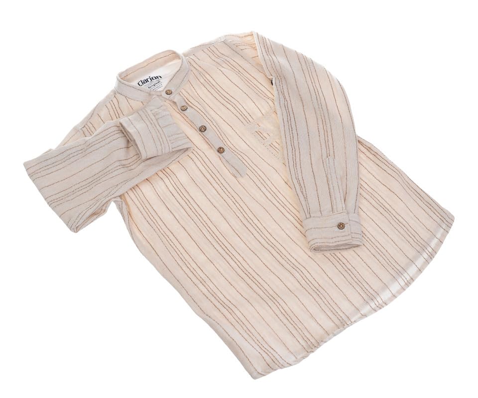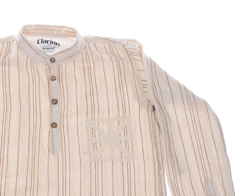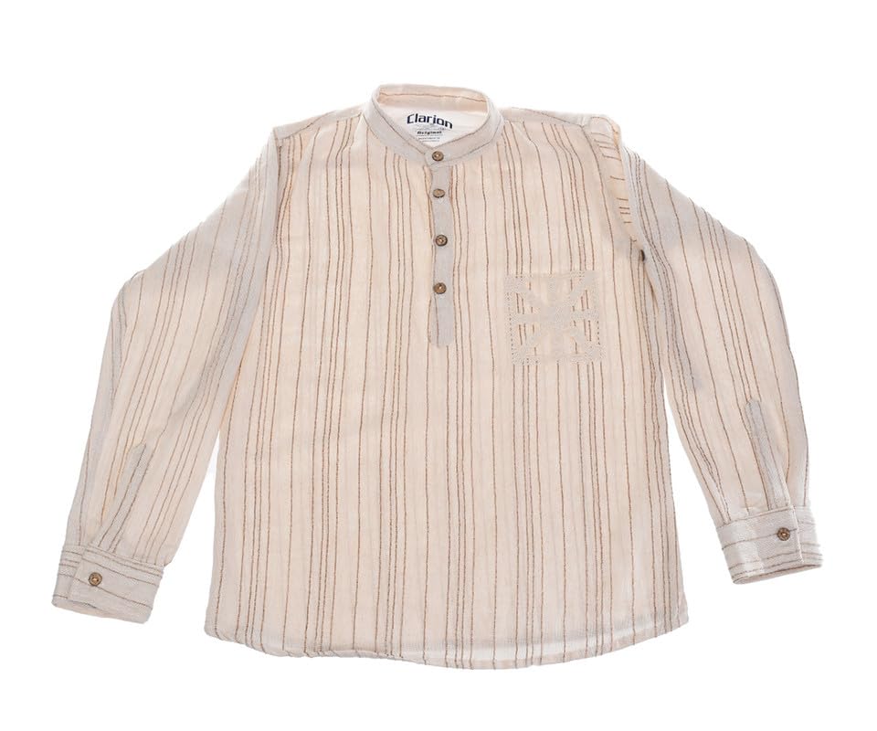Hayat Kidswear - قميص تريكو مخطط من الكتان بجيب على الصدر للاولاد من حياة
