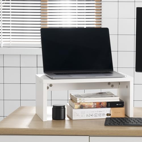 HAZCOVE - حامل شاشة ابيض طبيعي بارتفاع 7 انش من هازكوف - خشب رقائقي E0 صديق للبيئة 18 ملم مع لمسة نهائية سهلة التنظيف، رف مكتب مريح 16.7 انش للمنزل والمكتب