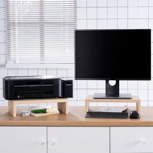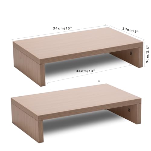 - متعدد الاستخدامات - 15 انش عرض × 9 انش عمق × 3.5 انش ارتفاع. عزز مكتبك أو مساحة عملك مع حامل شاشة الكمبيوتر المكون من قطعتين المصمم لاستيعاب شاشتين أو أجهزة متعددة تعمل معًا. سواء كنت تفضل ترتيبًا جنبًا إلى جنب أو تستخدمه بمفرده، فإن هذا الحامل يحافظ على سطح مكتبك مرتبًا ومنظمًا. يمتد تعدد استخداماته إلى ما هو أبعد من كونه حامل ممتاز لشاشات سطح المكتب؛ كما أنه يعمل بشكل جيد مع الطابعات والملفات.