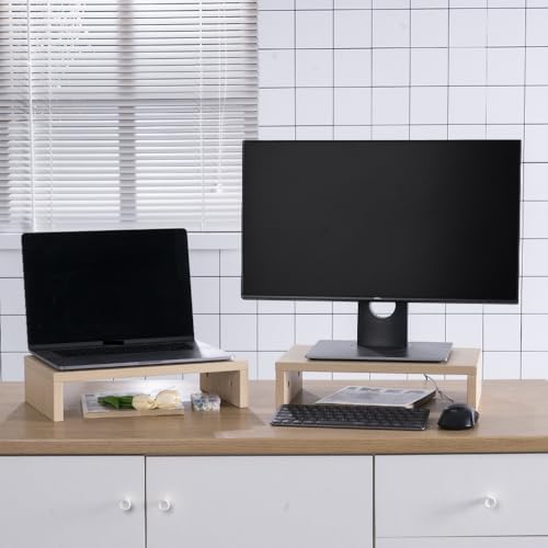 HAZCOVE - حامل شاشة مزدوج من هازكوف، حامل شاشة للمكتب، حامل شاشة كمبيوتر لشاشتين / لاب توب / كمبيوتر شخصي من الخشب الطبيعي لسطح المكتب (طبقة واحدة طبيعية)