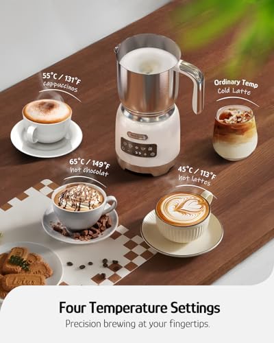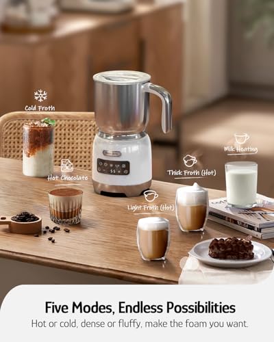 Hazel Quinn - أداة خفق اللبن بـ5 وظائف، درجة حرارة وسمك متغيرين، أداة بوظيفة تبخير اللبن، قابلة للفصل وآمنة للتنظيف في غسالة الأطباق، مناسبة لللاتيه الساخن والبارد والكابتشينو من هازل كوين - أبيض لؤلؤي، سعة 400 مل