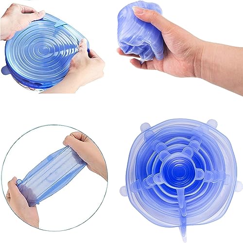 - خامة مرنة غطاء تخزين الطعام القابل للتوسيع مصنوع من مادة السيليكون عالية الجودة، صحي وآمن بنسبة 100%، ملمس ناعم، خالٍ من البيسفينول ايه، صديق للبيئة، بدون رائحة، مرونة قوية، قوة تمدد قوية، مقاوم للتمزق، سهل التنظيف، قابل لإعادة الاستخدام ومتين.