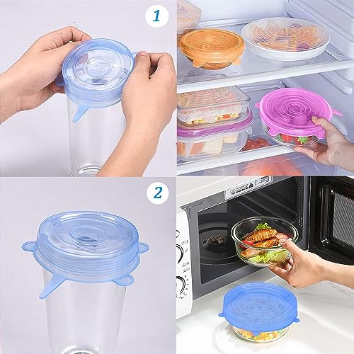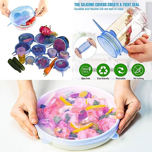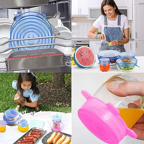 HBINGL - أغطية طعام سيليكون قابلة للتمدد من HBINGL من، 12 قطعة، لون أزرق وزهري، أغطية قابلة لإعادة الاستخدام لمختلف الحاويات، آمنة للاستخدام في الميكروويف وغسالة الأطباق