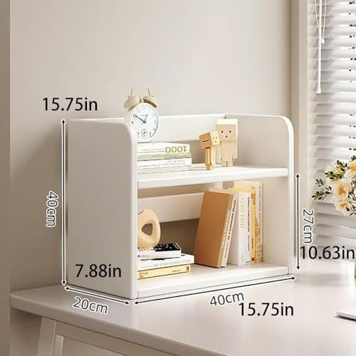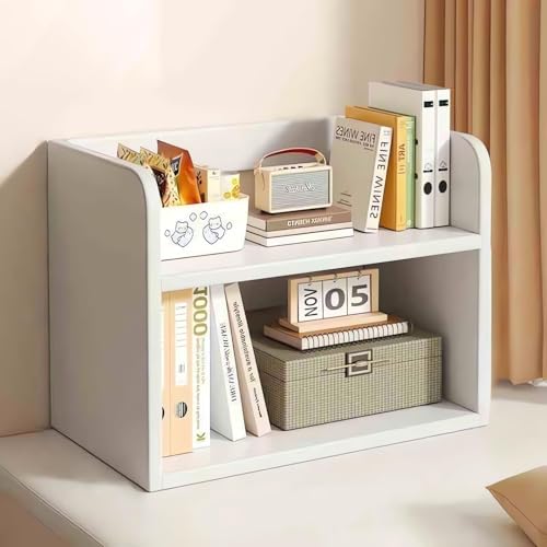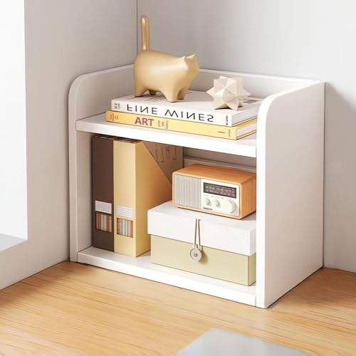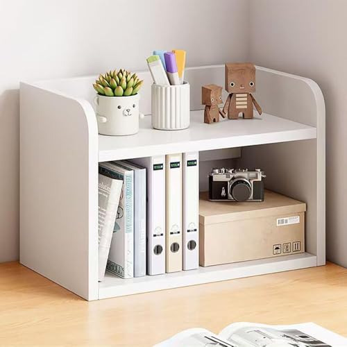 Hbluefat - رف تنظيم مكتبي خشبي من مستويين، مكتبة صغيرة لتخزين الكتب، رف عرض للتخزين على سطح المكتب مناسب للمكتب المنزلي من هبلو فات، لون أبيض