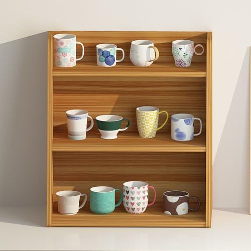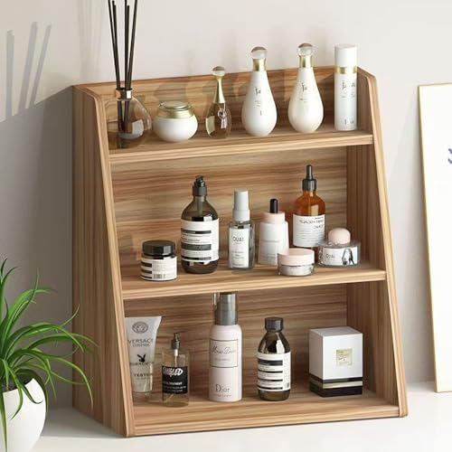 Hbluefat - خزانة كتب مكتبية/رف كتب من 3 طبقات شبه منحرفة من اتش بلوفات، رف عرض لسطح المكتب، اطار تخزين فوضوي، رف منظم لسطح الطاولة متعدد الوظائف للمنزل والمكتب والمطبخ (خشب الجوز)