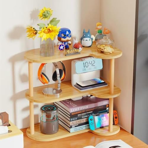 Hbluefat - رف حامل زاوية لسطح المكتب من اتش بلوفات، منظم رف كتب خشبي من 3 طبقات، متعدد الاغراض للعرض على سطح الطاولة للمنزل والمكتب (خشب)