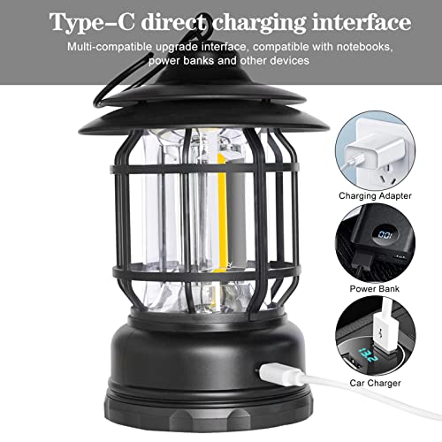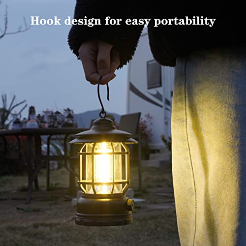 HBOY - فانوس تخييم LED ريترو قابل لإعادة الشحن بمنفذ USB من اتش بوي، مصابيح تخييم عتيقة، مصباح خيمة محمول مقاوم للماء مع وضعين إضاءة للمشي لمسافات طويلة والصيد، برونزي