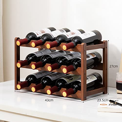 Hcosmy - رف مشروبات من الخيزران من اتش كوزمي، 2/3/4 طبقات من 12 زجاجة، حامل عرض لخزانة المشروبات، حامل خشبي قوي ومتين لتخزين المشروبات (3 طبقات)
