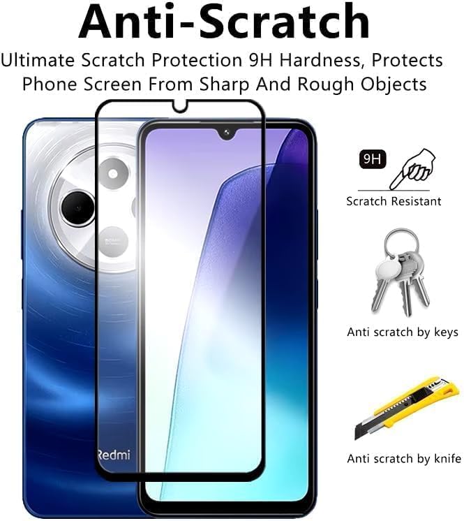 Generic - شاشة حماية زجاجية HD عالية الدقة متوافق مع هاتف ريدمي 14C و بوكو C75 . مضادة للصدمات مزودة بحواف سوداء لحماية شاشة الهاتف (B)