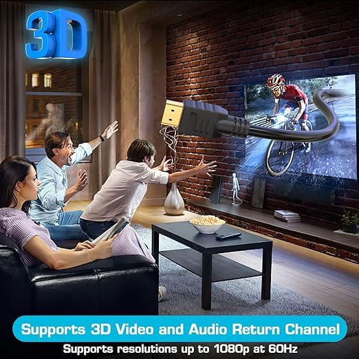 - كابل اتش دي ام اي عالي السرعة: كابل HDMI بطول 50 قدم (15.24 متر) باللون الأسود يوفر اتصالًا موثوقًا به عالي السرعة لنظام الترفيه المنزلي أو وحدة التحكم في الألعاب أو الإعداد الاحترافي