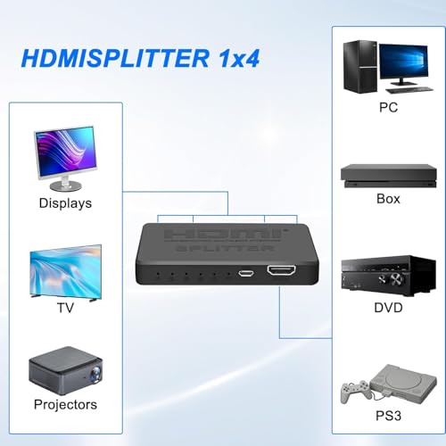Generic - موزع HDMI 1 في 4 مخارج و4 منافذ HDMI يدعم 3D 4K 30HZ، 4K