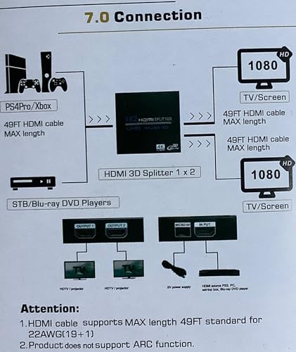 Generic - موزع اشارة عالي الجودة بشاشتين HDMI هو الحل الأمثل لتقسيم إشارة واحدة إلى شاشتين مختلفتين أو شاشتين في نفس الوقت (مقسم اشارة HDMI)