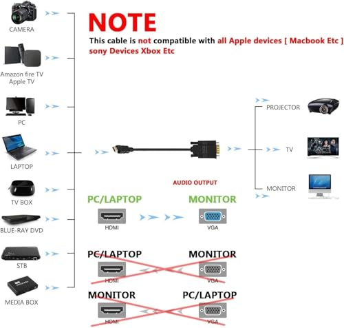 Generic - كيبل محول HDMI الى VGA بطول 6 قدم/1.8 متر مطلي بالذهب 1080P HDMI ذكر الى VGA ذكر يدعم نوت بوك والكمبيوتر ومشغل دي في دي واللابتوب والتلفزيون وجهاز العرض وغيرها