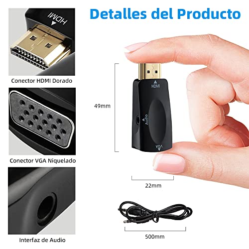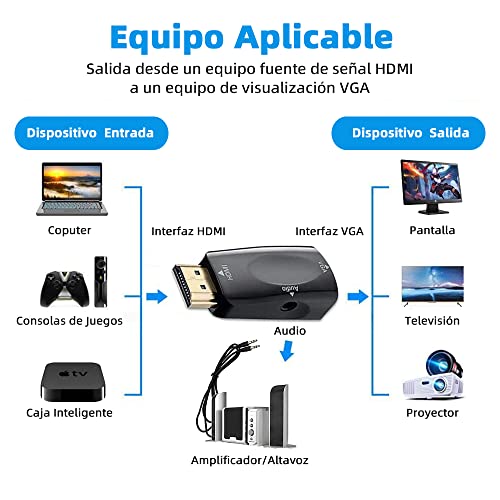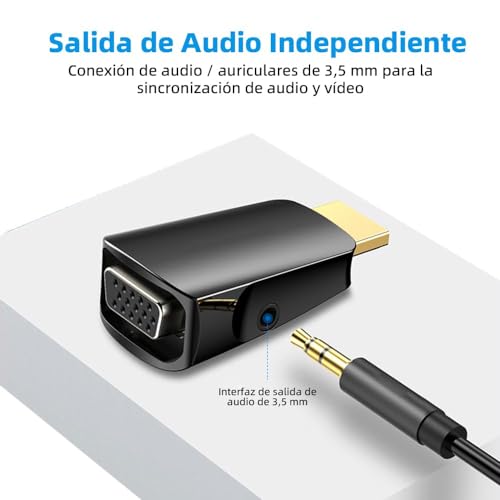 AVELINE006 - محول HDMI إلى VGA مع كابل مخرج صوت 3.5 ملم، مناسب لمجموعة واسعة من الأجهزة، محول تلفزيون وكمبيوتر شخصي، ماك بوك برو/إير، سامسونج جالاكسي وجهاز تشغيل ألعاب الفيديو الرقمية نينتندو