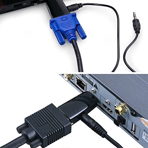 - 【يدعم مزامنة الصوت والفيديو】كابل صوت إضافي مع مقبس ايه يو اكس 3.5 ملم، يمكنك توصيله بمكبرات الصوت باستخدام كابل صوت 3.5 ملم. شارك حياتك مع العائلة أو الأصدقاء في أي وقت. محول HDMI إلى VGA مع صوت يثري حياتك