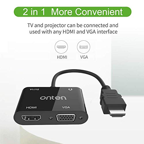 ONTEN - محول HDMI الى VGA مقسم 1 في 2 خارج للكمبيوتر سطح المكتب اللابتوب جهاز الكمبيوتر المكتبي الشاشة من اونتن...باور سبلاي متعدد الألوان