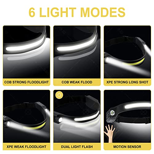 JIASESCS - مصباح رأس 2 اكس بي اي بـ 6 أوضاع لجهاز استشعار الحركة بفانوس أمامي برؤية 260 درجة قابل لإعادة الشحن ومقاوم للماء IPX4 بدون استخدام اليدين للبالغين والأطفال للتخييم والجري وصيد الأسماك وركوب الدراجات