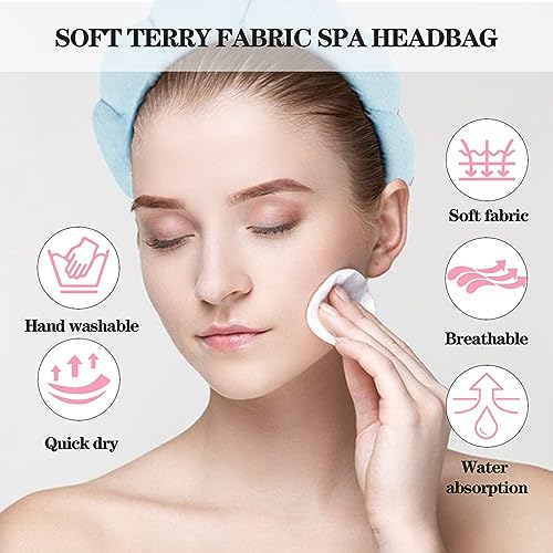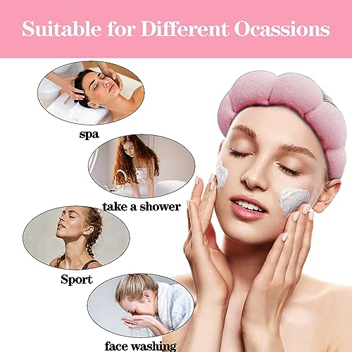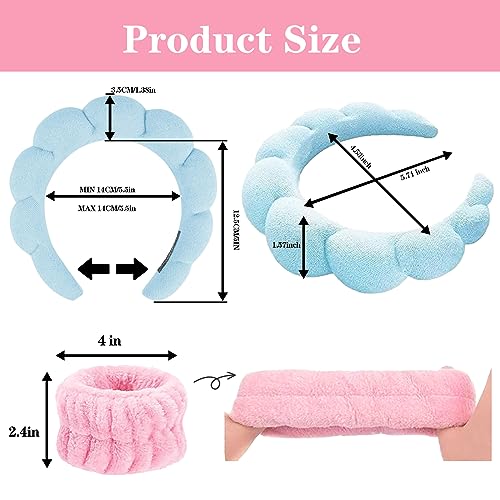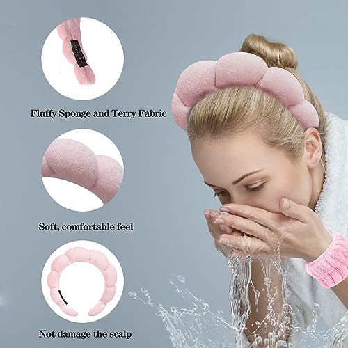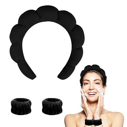 YUCCOY - شريط راس لغسل الوجه من يوكوي، شريط راس اسفنجي مع مجموعة اساور معصم، شريط راس من قماش تيري منتفخ غير قابل للانزلاق للنساء والفتيات، شريط راس لطيف لغسل الوجه وازالة المكياج،