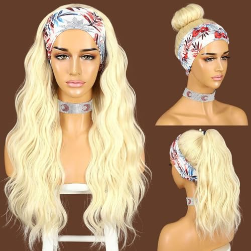 Generic - باروكة شعر صناعي مموج مقاوم للحرارة 56 سم بدون لاصق مع شريط للرأس للنساء ذوات البشرة السمراء، باروكة مجعدة عالية الكثافة بأطراف كاملة ومظهر طبيعي، لون أشقر N-15