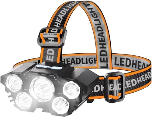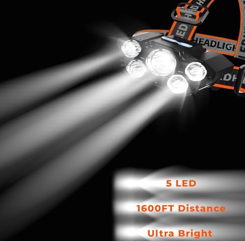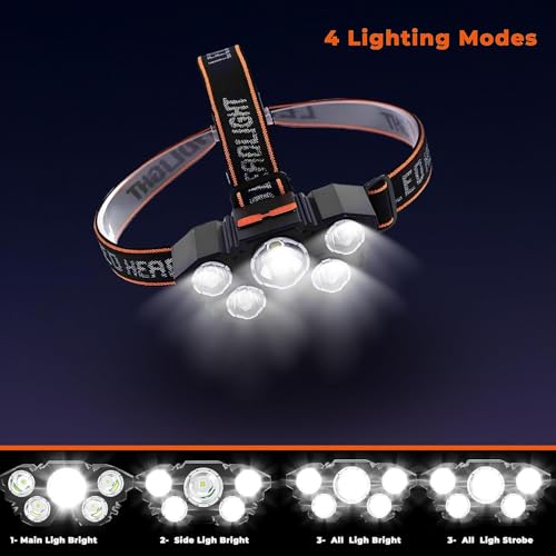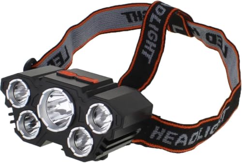 Generic - مصباح رأس قابل للشحن و مقاوم للماء, 5 مصابيح إضاءة مركزة مع 4 أوضاع إضاءة و فلاشر وميض, مناسب للمشي في الليل و الطوارئ والصيد وقيادة الدراجة و الأعمال المنزلية التي تحتاج اضاءة مركزة أثناء الحركة