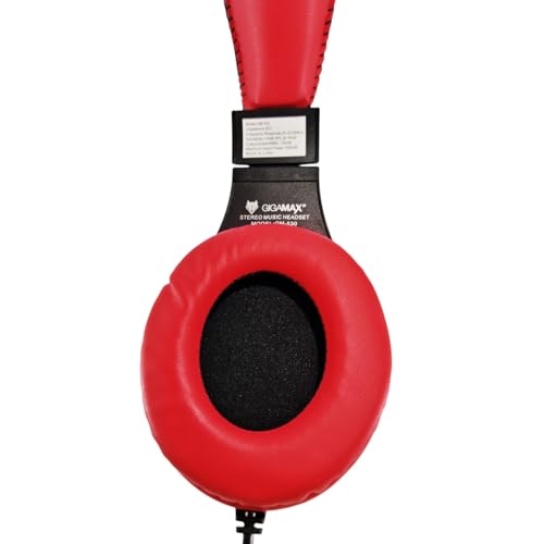 GigaMax - سماعة رأس GM-530 من جيجاماكس - 2 مقبس - تصميم مريح للأذن - باللونين الأسود والأحمر
