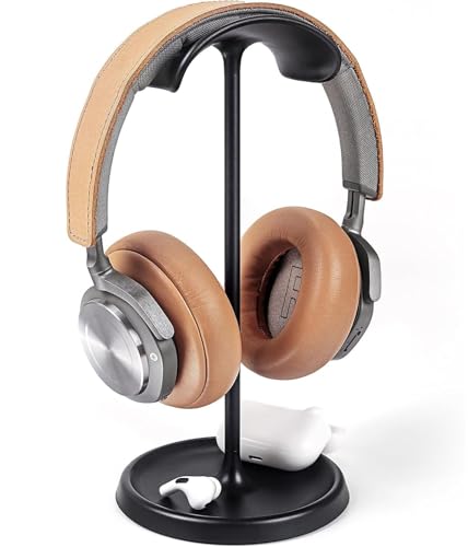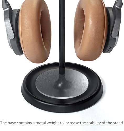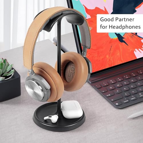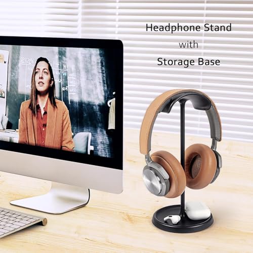 Generic - حامل سماعات الرأس منحني مع صينية تخزين مناسب للألعاب بقاعدة ثقيلة لسماعات ايربودز ماكس وايربودز وايربودز برو وبيتس وبوس وسوني وغيرهم، (لون أسود)
