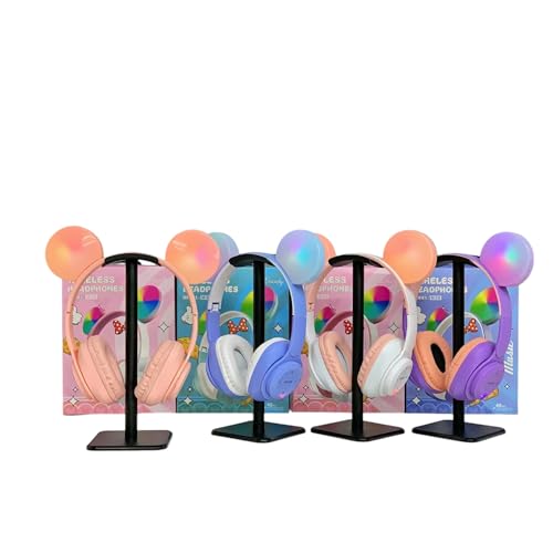 - ميزات التصميم: سماعات رأس رائعة مستوحاة من شخصية ميكي مع تأثيرات إضاءة ار جي بي ونظام ألوان وردي وأبيض أنيق لجاذبية جمالية فريدة.