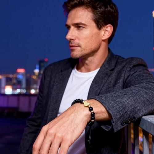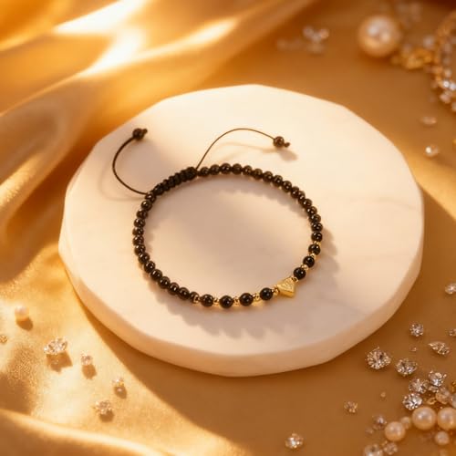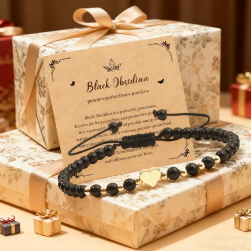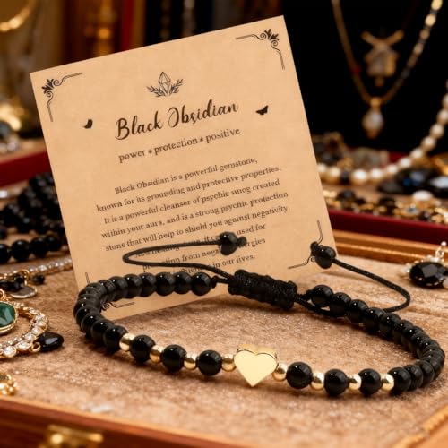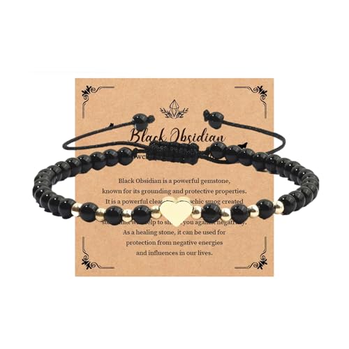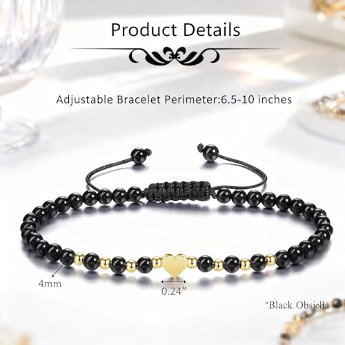 FNSIGHD - سوار كريستال علاجي للنساء، سوار تورمالين اسود مع قلب، اساور زجاج بركاني قابلة للتعديل مصنوعة يدويا للنساء، هدايا مجوهرات للبنات والصديقة والام في عيد الميلاد وعيد الحب