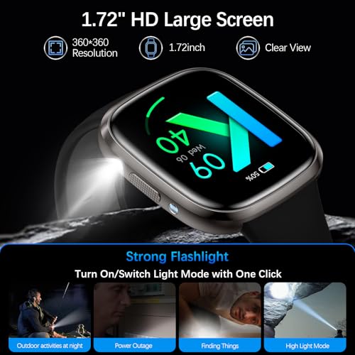 - تصميم قوي التحمل: مقاومة للماء بتصنيف IP68 لمقاومة المياه والغبار حتى 10 أمتار، مع هيكل خفيف الوزن، وشاشة HD عالية الدقة نابضة بالحياة مقاس 1.75 بوصة وأساور سيليكون ناعمة، مما يضمن راحة ومتانة دائمة. عمر بطارية يصل إلى 7 أيام لتتبع اللياقة البدنية دون انقطاع.