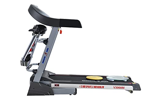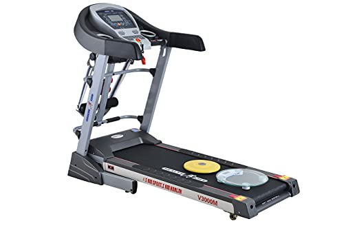 Health Life - جهاز مشي من هيلث لايف، بموتور متعدد الوظائف ومزود بميزان ذاتي يتحمل وزن حتى 120 كجم، رمادي واسود، V3000M
