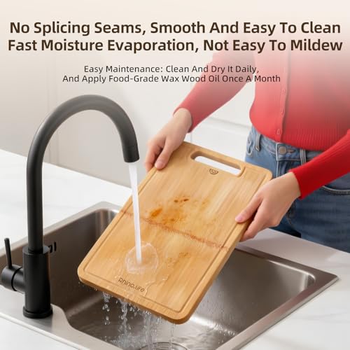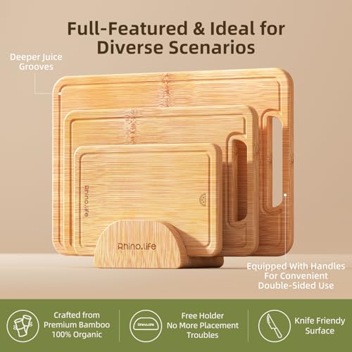 RhinoLife - ألواح تقطيع صحية وغير سامة وعضوية بالكامل خالية من الصمغ والبلاستيك، لوح تقطيع خشبي غير صلب مع يد للمطبخ للحوم والخضروات والفواكه، 3 قطع