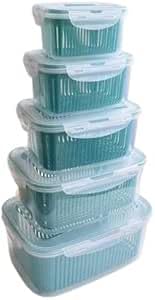 Generic - طقم علب حفظ طعام صحي وآمن 5 مقاسات مختلفة مزودة بمصفاة داخلية لتصفية الخضروات والفواكه MO
