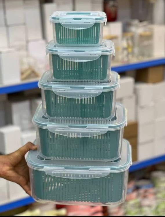 - طقم متكامل 5×1 مكوّن من خمس علب بأحجام مختلفة لحفظ الطعام بسهولة.