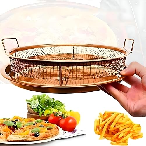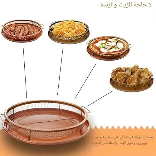 Generic - صينية قلي صحية، من أجل أطعمة مقلية مقرمشة تمامًا وخالية من الزيوت، صينية دائرية مقاس 32 سم ورف تصريف 2 في 1 لتجربة طهي خالية من الدهون
