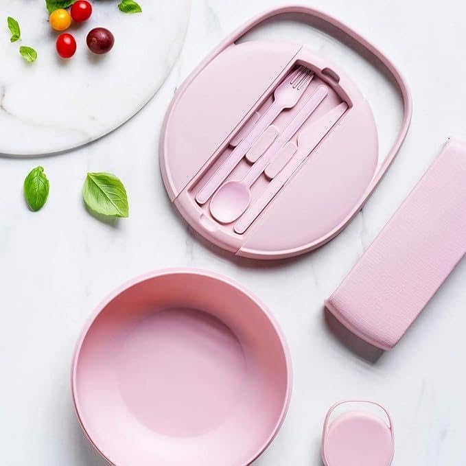 - مجموعة أدوات المائدة المحمولة والقابلة لإعادة الاستخدام – مثالية للسفر والتخييم والنزهات والمكاتب والمدارس، تأتي مع صندوق غداء بسعة 1.4 لتر مزود بمقبض عملي يحافظ على جميع مستلزماتك مرتبة وجاهزة للاستخدام في أي وقت وأي مكان.