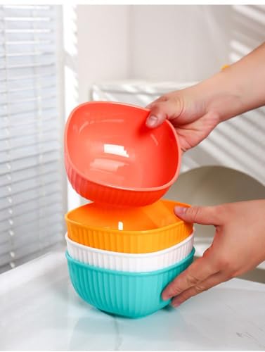 - مجموعة متعددة الاستخدام: طقم من 4 قطع من الأطباق البلاستيكية الصحية بألوان زاهية ومبهجة مثالية لتقديم السلطات والخضراوات والفواكه والوجبات الخفيفة