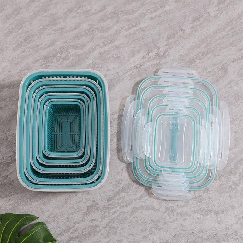 Generic - طقم علب ثلاجة بلاستيك صحي 5 قطع بمقاسات مختلفة مع مصافي داخلية – غطاء محكم بكليبس وفتحات تهوية – مناسب لحفظ وتصفية الخضروات والفاكهة – آمن للاستخدام في غسالة الأطباق J