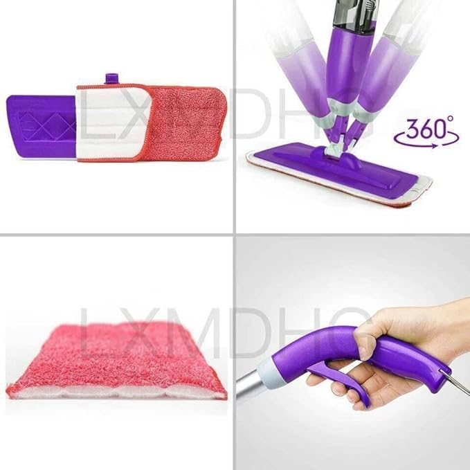 Generic - ممسحة صحية مع وسادة تنظيف من الألياف الدقيقة قابلة للإزالة والغسل ونظام رش ماء مدمج، تنظيف قوي 360° لجميع الأرضيات، الأسطح الرطبة والجافة، لون أخضر لون أحمر