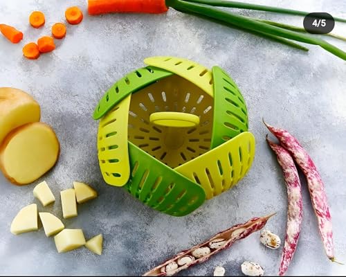 Generic - سلة تبخير صحية سيليكون قابلة للطي تضمن طهيًا خاليًا من الزيت وغنيًا بالعناصر الغذائية للخضراوات والفواكه واللحوم يمكن طيها لتوفير المساحة وسهلة التنظيف ومثالية لوجبات صحية.