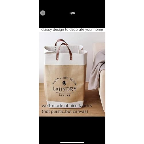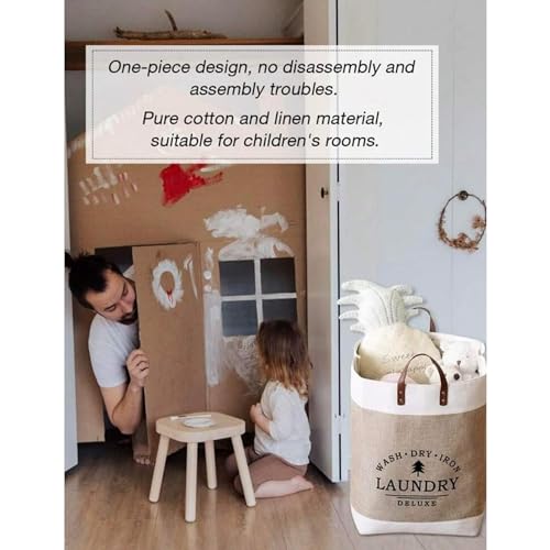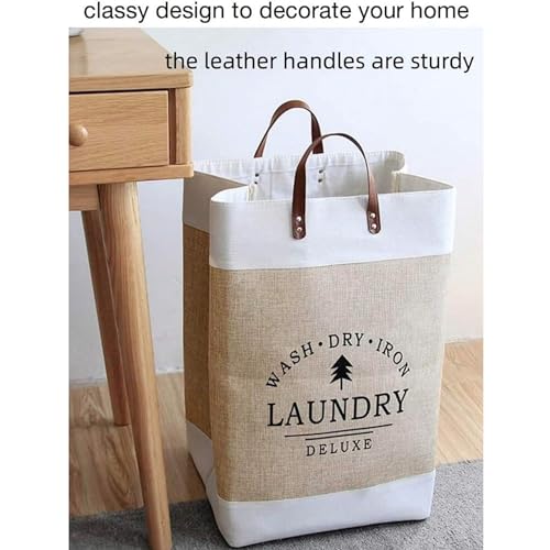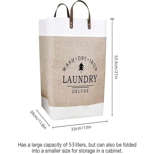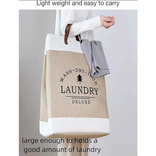 HealthyMoov - سلة غسيل الملابس فاخرة من هيلثي موف، بمقابض من الجلد، شنطة تخزين قابلة للطي للملابس والملايات من الكتان السميك، خفيفة الوزن لحمل مزينة برسومات عصرية عالية الجودة، قطعة واحدة