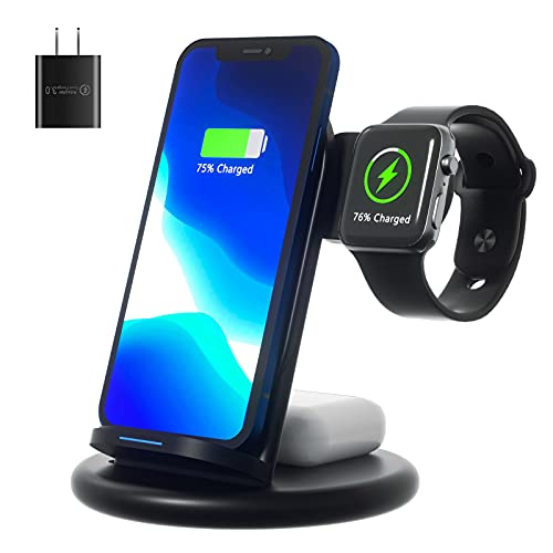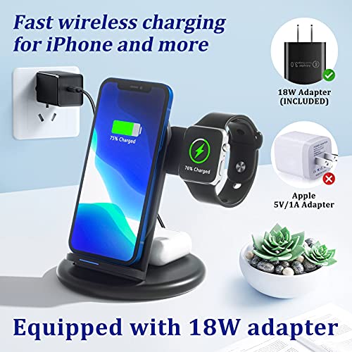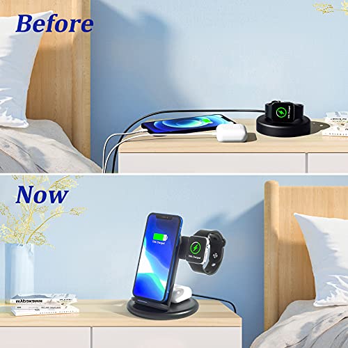 - 【شاحن لاسلكي 3 في 1】يمكن لقاعدة الشحن اللاسلكية شحن ثلاثة أجهزة ايفون واي ووتش وايربودز في نفس الوقت. (بما في ذلك محول 18 واط)