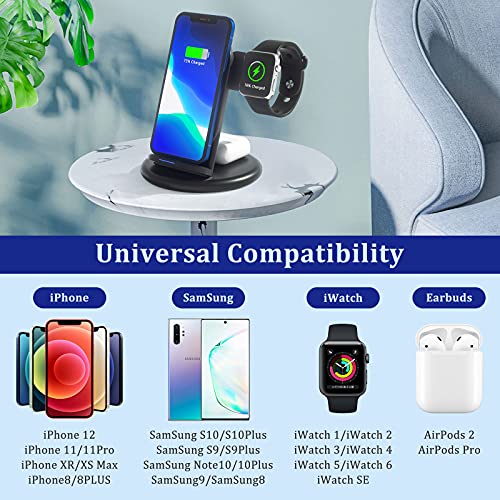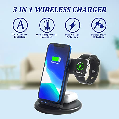 HeanYosn - قاعدة شحن لاسلكية 3 في 1 للاجهزة المتعددة، شاحن لاسلكي 3 في 1 متوافق مع منتجات ابل واير بودز، قاعدة شحن لاسلكية سريعة 15 واط لهاتف ايفون 12/11/XS/XR/X/8 من هيانيوسن