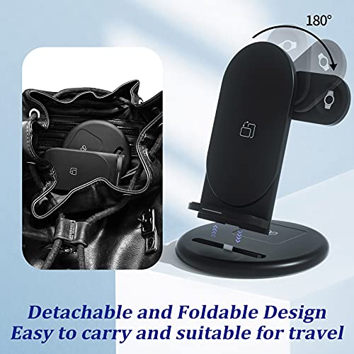 - 【موفر للمساحة وسهل الحمل】يعتمد الشاحن اللاسلكي 3 في 1 على تصميم قابل للفصل والطي، والذي يمكن وضعه بسهولة في حقيبة الظهر، ومناسب للمنزل والمكتب والسفر. كابل شحن واحد يمكنه شحن ثلاثة أنواع من الأجهزة، لا داعي للقلق بشأن تشابك كابلات الشحن المتعددة، لم يعد سطح المكتب فوضويًا، ويوفر مساحة كبيرة لك.
