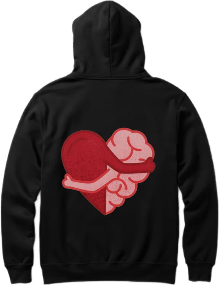 Generic - Heart and Brain Hugging Hoodie back أسود