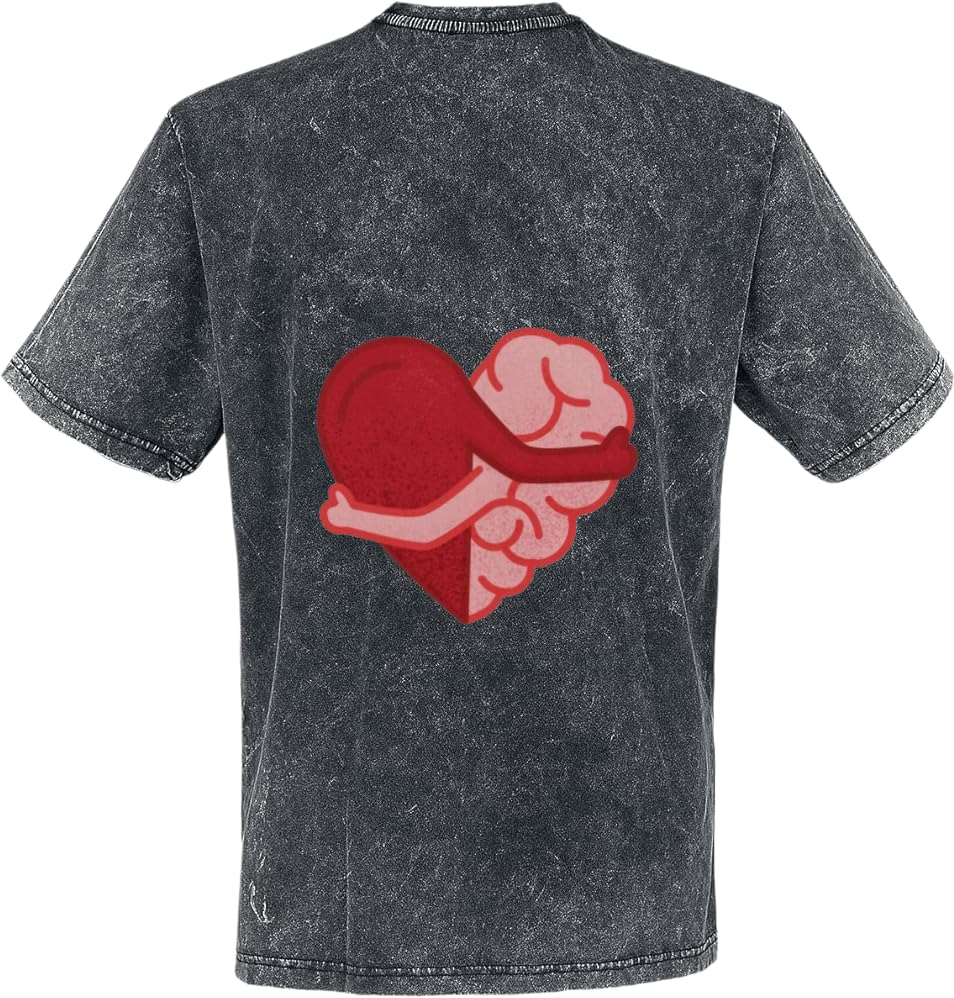 Generic - تي شيرت مطبوع عليه Heart and Brain Hugging بظهر مغسول